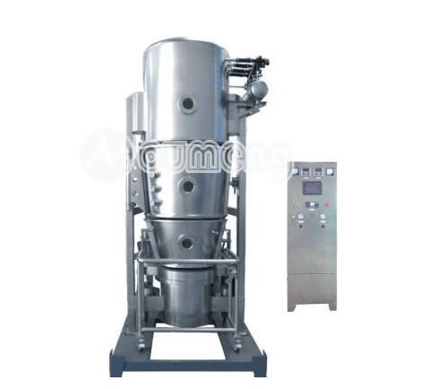 物料粉末粒子,在原料容器(流化床)中呈環(huán)形流化狀態(tài),受到經(jīng)過凈化后的加熱空氣預(yù)熱和混合,將粘合劑溶液霧化噴入,使若干粒子聚集成含有粘合劑的團(tuán)粒,由于熱空氣對(duì)物料的不斷干燥,使團(tuán)粒中水分蒸發(fā),粘合劑凝固,此過程不斷重復(fù)進(jìn)行,形成理想的、均勻的多微孔球狀顆粒。